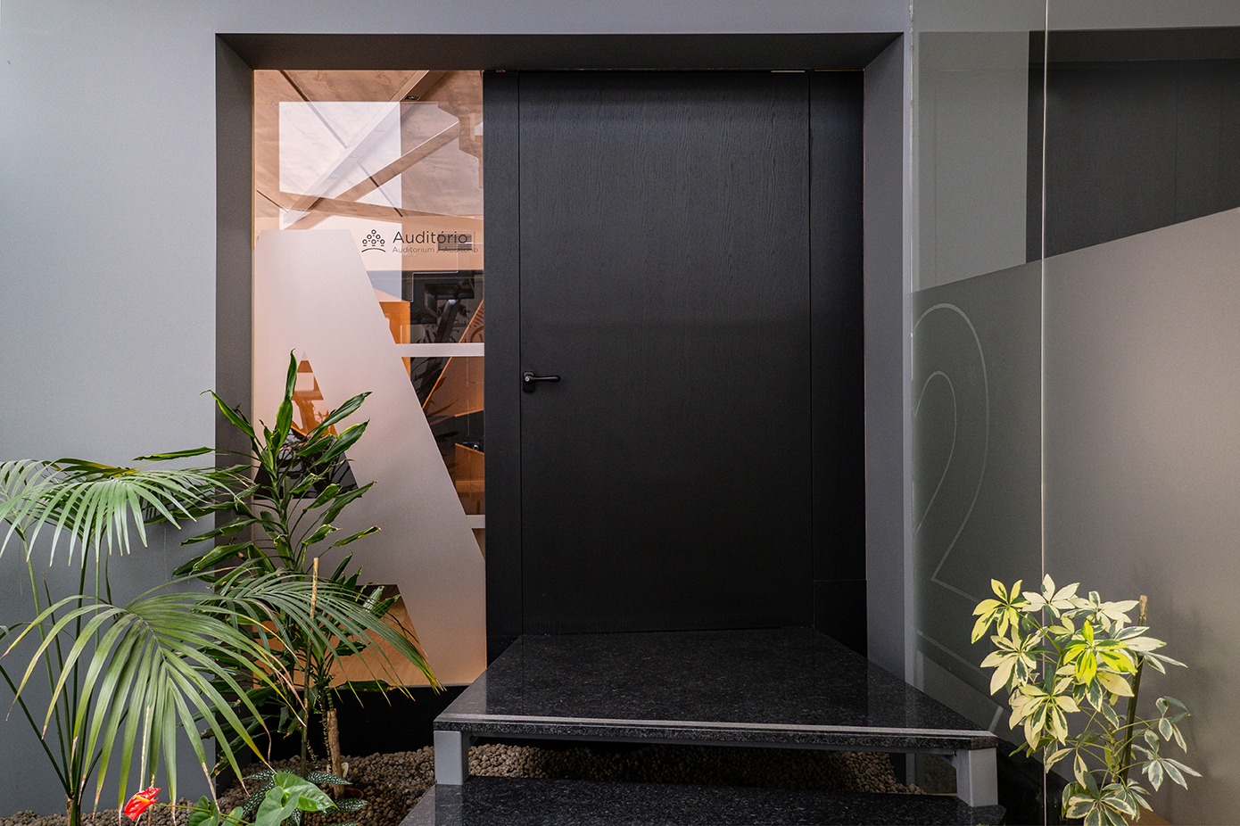 Espaço disponível, desde Hall de Entrada, Auditório, Sala Lounge e WCs de apoio. Com área total de aproximadamente 70M2, nas instalações do grupo LFM Corporate.
